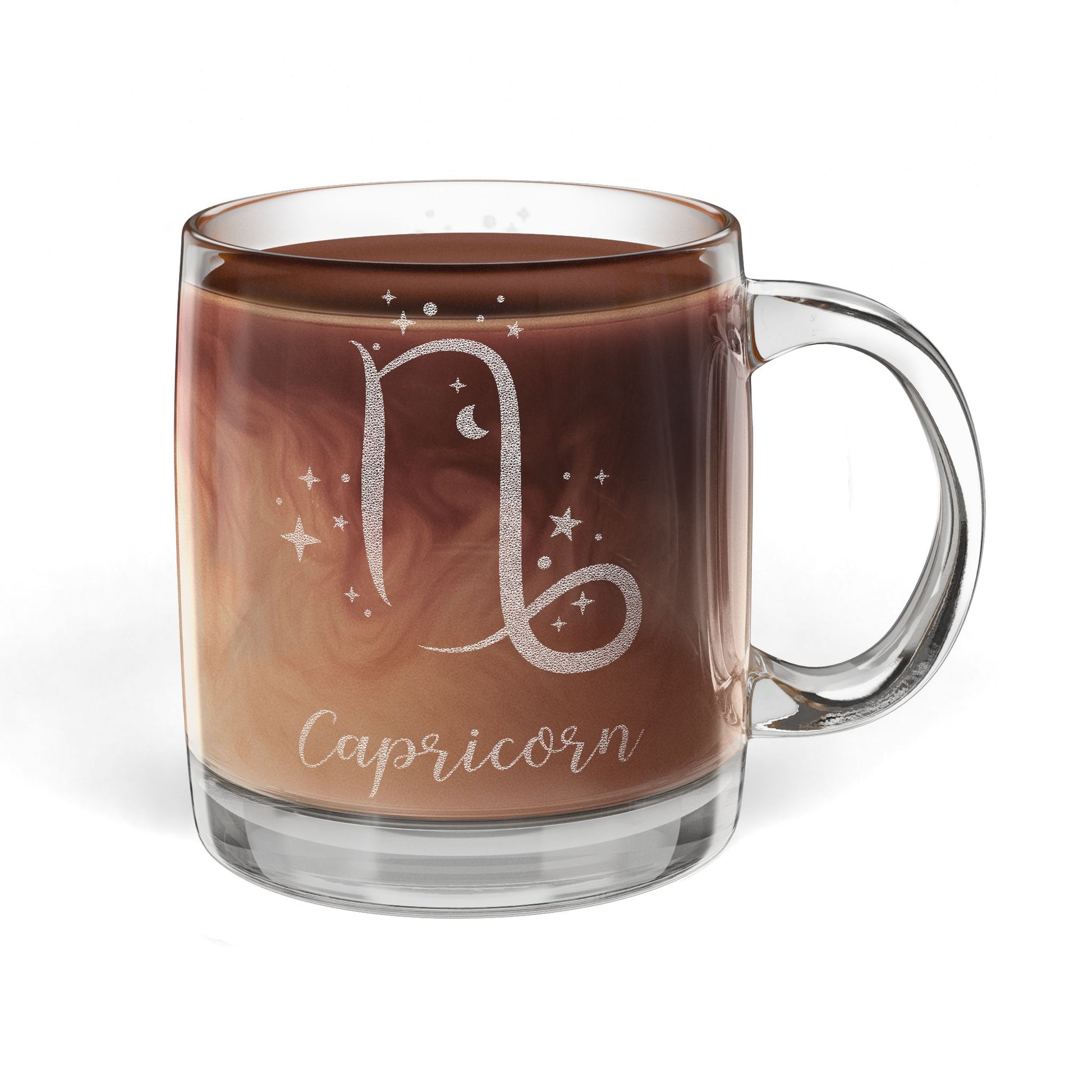 Capricorn Zodiac Engraved Glass Coffee Mug - Perfect for Astrology Lovers, Birthdays, Gifts, Home Decor, and Special Occasions