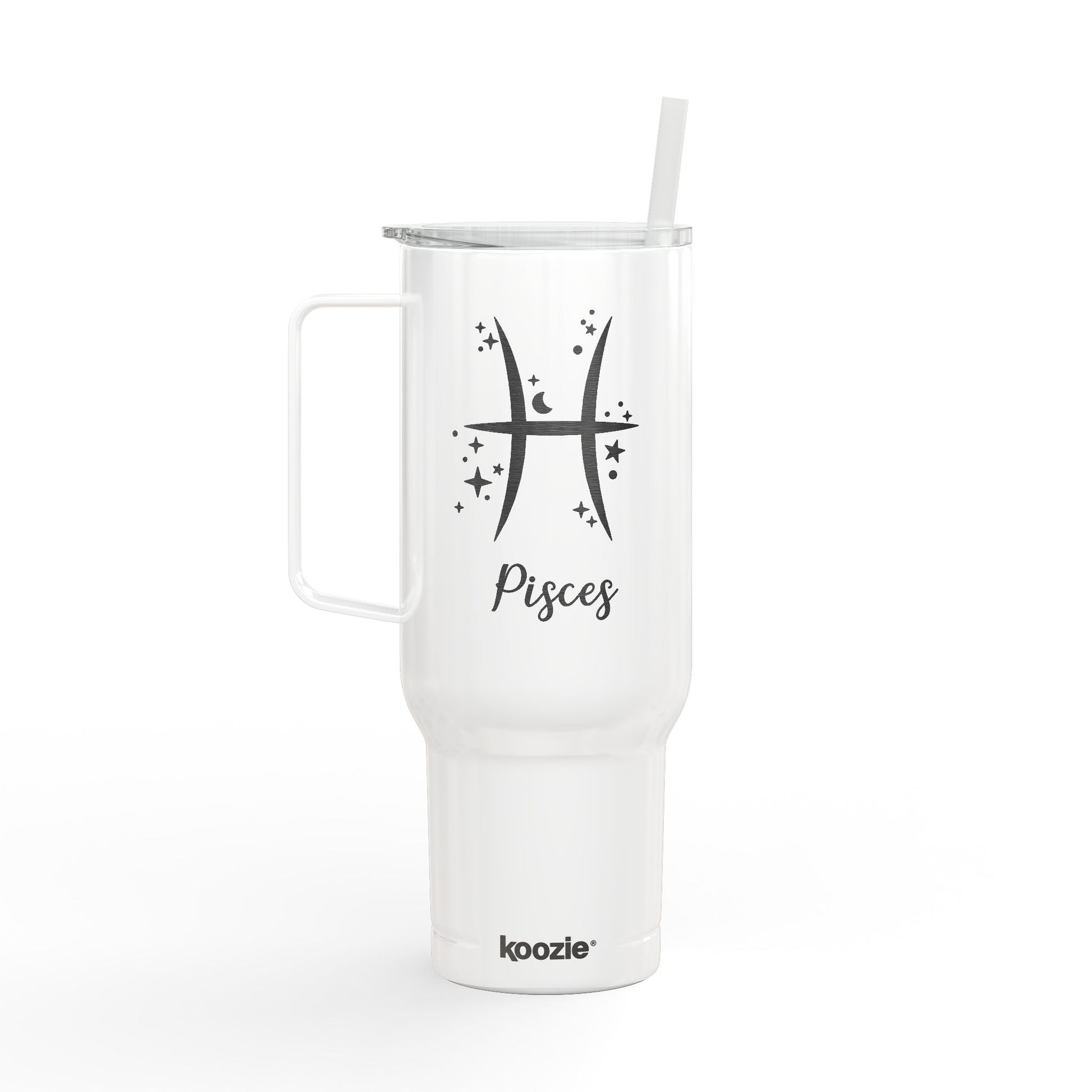 PISCES Zodiac Engraved Tumbler – Personalized 40oz Insulated Travel Mug with Lid & Straw | Astrology Gift